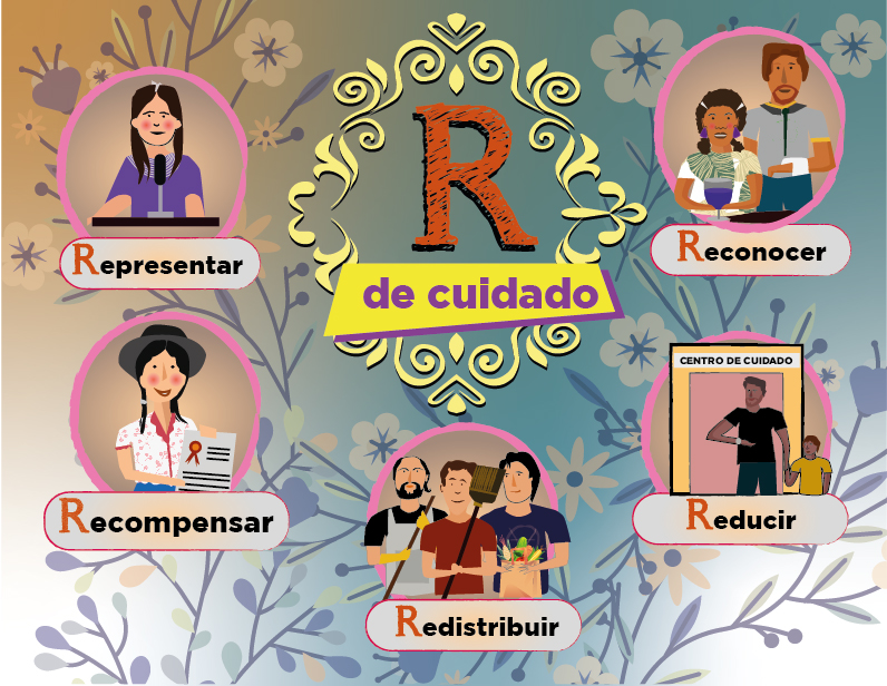 Reconocer, reducir y redistribuir (R de cuidado) responsabilidades de cuidado como factores de fortalecimiento en acciones cooperativas.